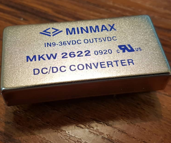 قطعه MKW2622 یک DC/DC با ولتاژ ورودی 24 ولت (دامنه گسترده 9 تا 36 ولت) و ولتاژ خروجی 5 ولت و توان 15 وات (3 آمپر) است که اورجینال شرکت MINMAX میباشد