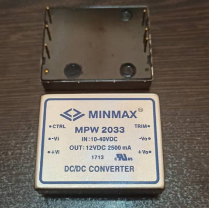 قطعه MPW2033 یک DC/DC با ولتاژ ورودی 24 ولت (دامنه گسترده 10 تا 40 ولت) و ولتاژ خروجی 12 ولت و توان 30 وات است که اورجینال شرکت MINMAX میباشد