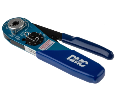 M22520/2-01, is a crimp tool designed for machined pin and socket contacts with wire barrel sizes 20-28